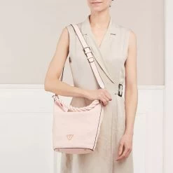 Die handliche Hobo Bag Hassie Bucket Hobo Powder Pink von Guess vereint einen femininen und detail-bewussten Look.