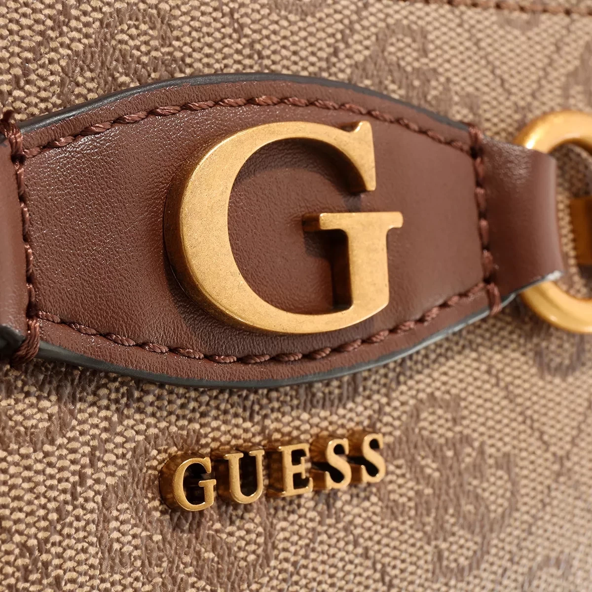 Die Izzy Top Zip Shoulder Bag Latte Logo/Brown von Guess ist nostalgisch und zugleich leicht handhabbar.