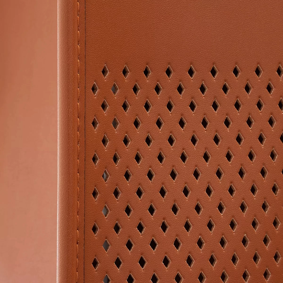 - Pflegeleichte Oberfläche gefertigt aus glattem Kunstleder in Cognacbraun mit Loch-Muster für einen unempfindlichen, luxuriösen Charakter