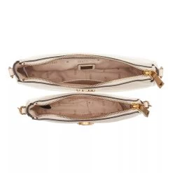 - Tascheninneres aus weichem, beigem Textil mit Markenlogo