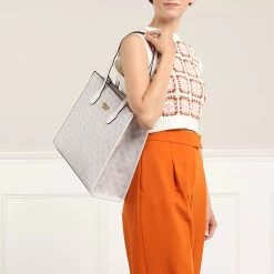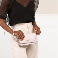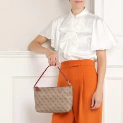 - Tascheninneres bestehend aus praktischem, cremefarbenem Textil mit Markenlogo