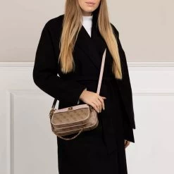 Die leicht handhabbare Crossbody Bag Nell Logo Double Pouch Crossbody Latte Logo/Rosewood von Guess vereint einen entspannten und lässigen Look.