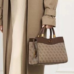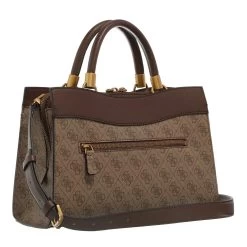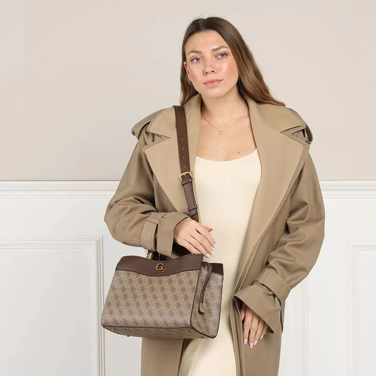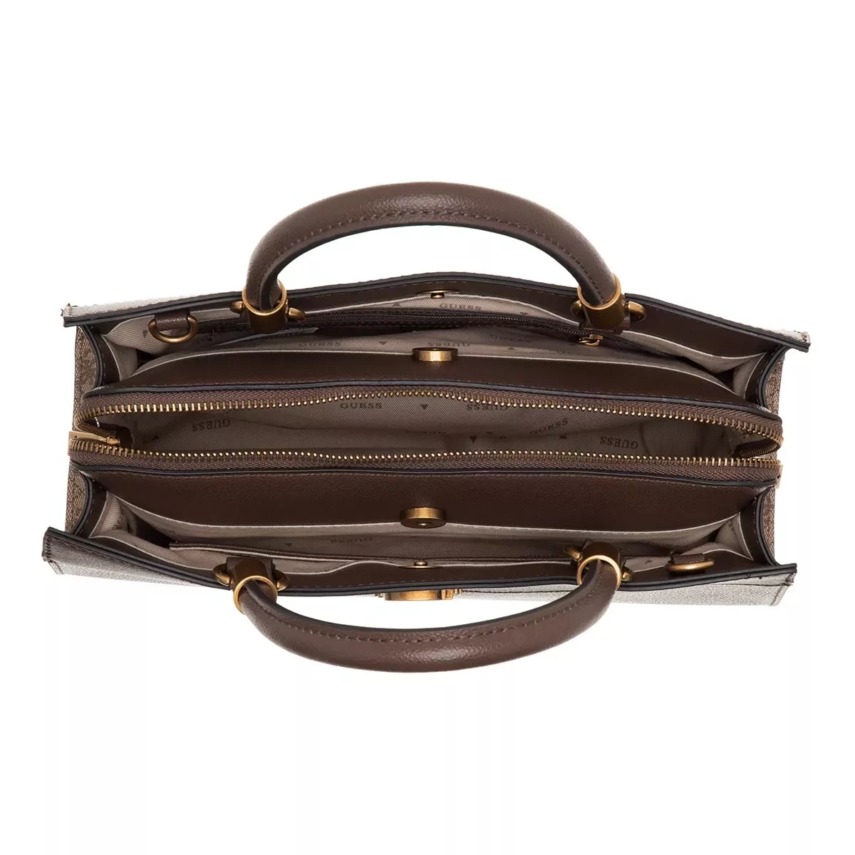 Guess Izzy Top Zip Shoulder Bag Latte Logo/Brown Crossbody Bag