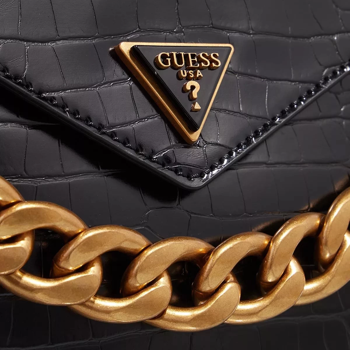 Die leicht handhabbare Satchel Retour Top Handle Flap Black von Guess vereint einen klassischen und rockigen Look.