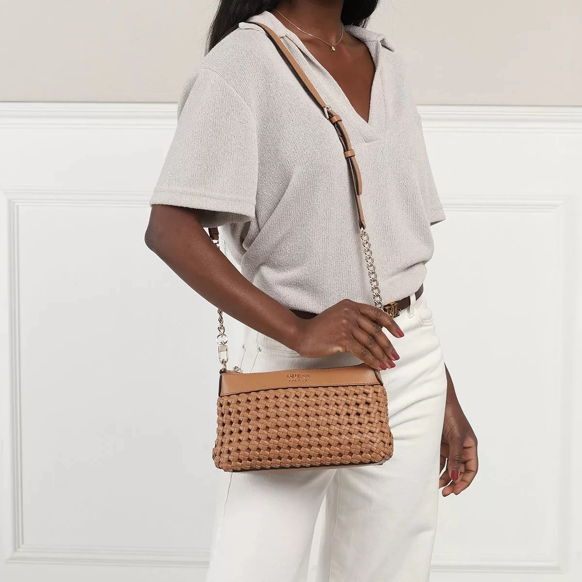 Guess Alexie Double Pouch Crossbody Brown Logo Crossbody Bag