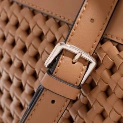 - Langlebige Oberfläche gefertigt aus geflochtenem, glattem Kunstleder in Cognacbraun für einen relaxten Charakter
