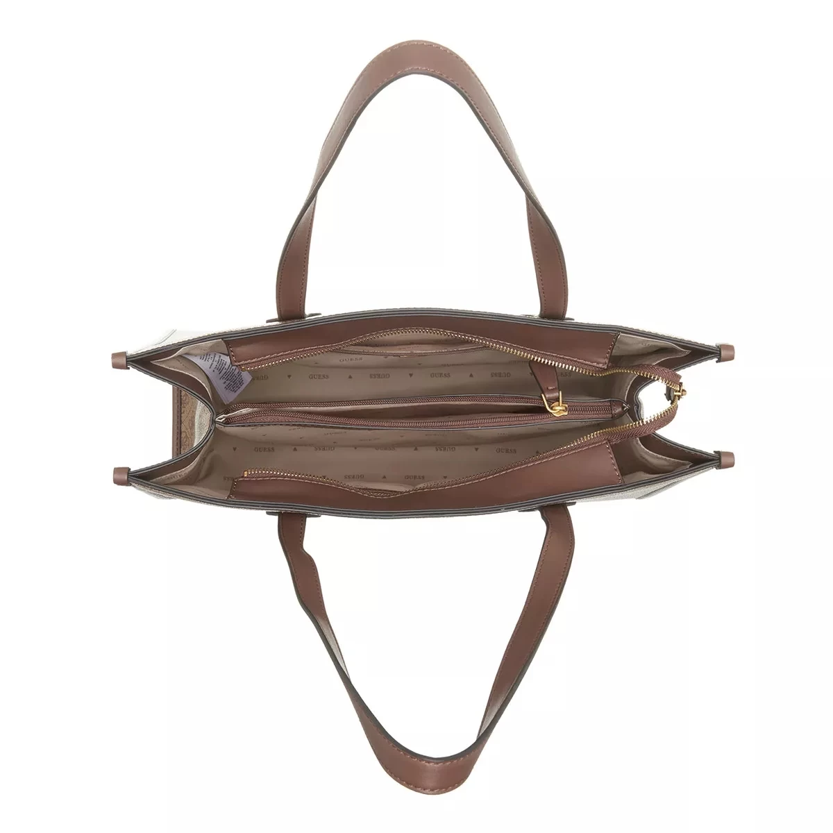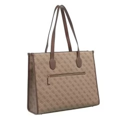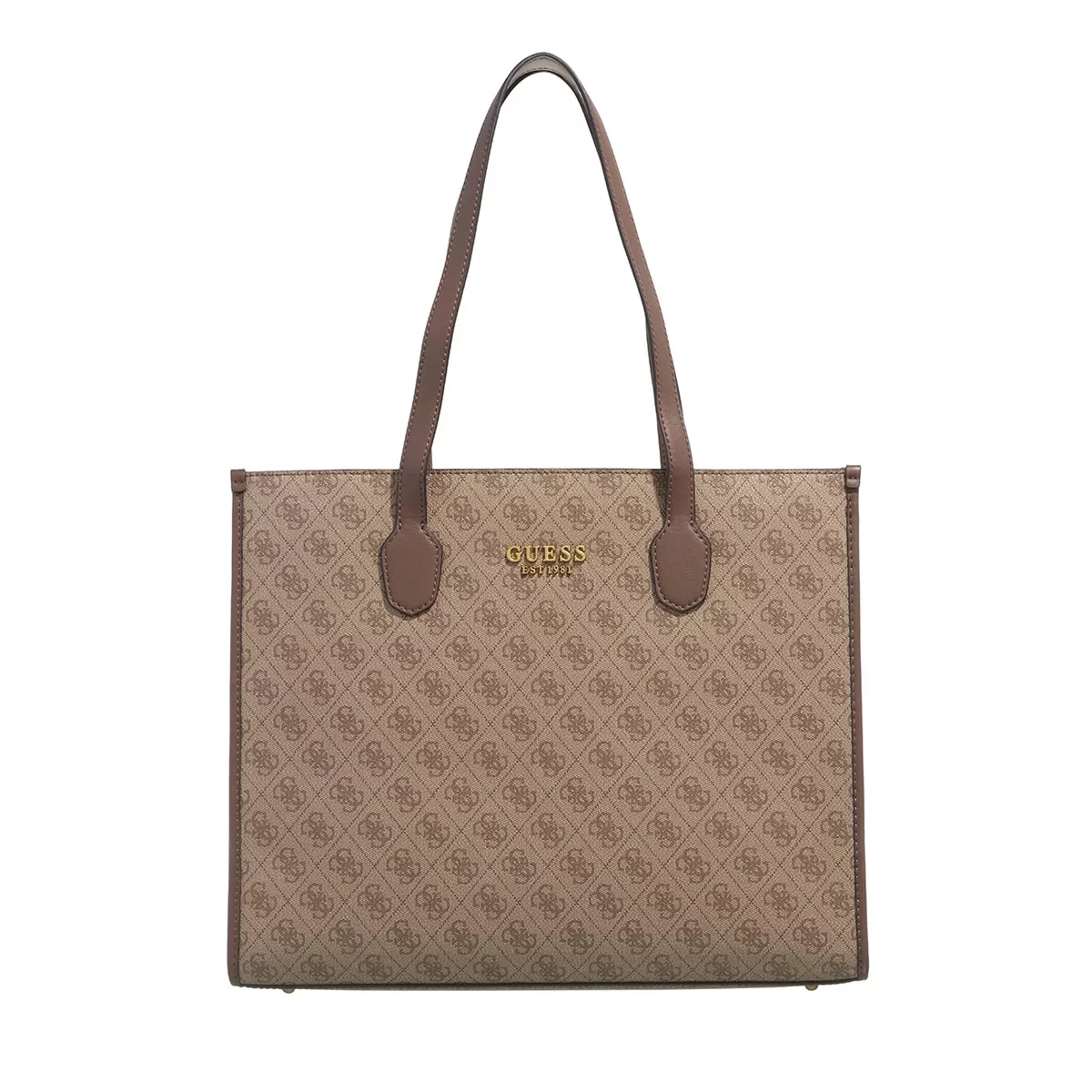 Hochwertig und schlicht – das ist der moderne Shopper Silvana Girlfriend Tote Latte Logo/Brown von Guess.