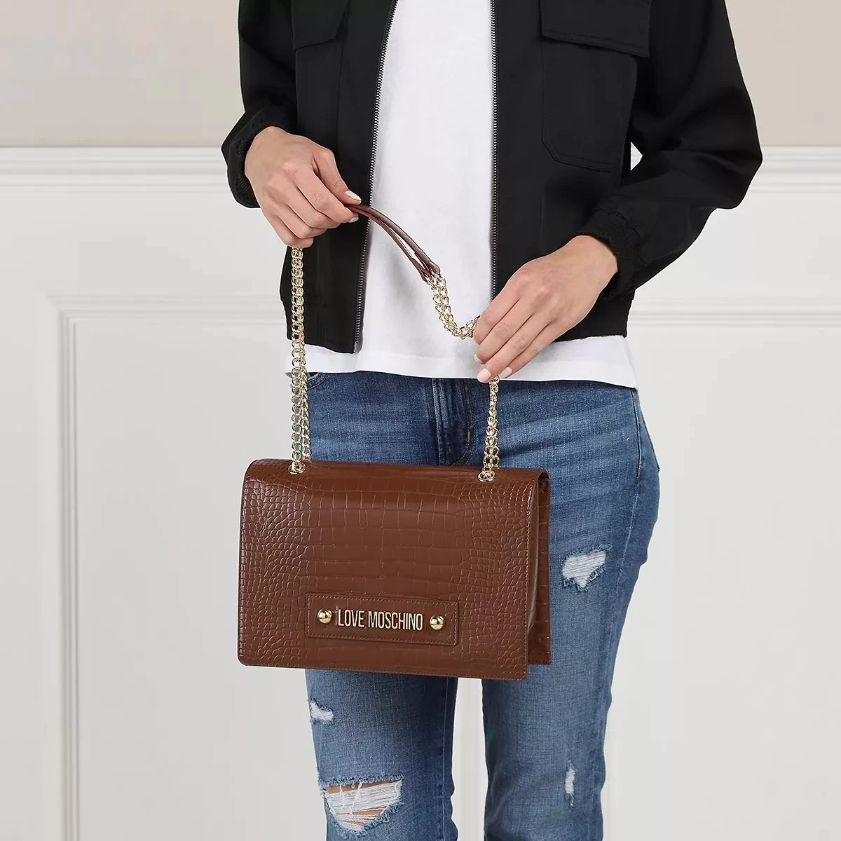 Die Borsa Big Logo Croco Pu Marrone von Love Moschino ist schlicht und bleibt zugleich praktisch.