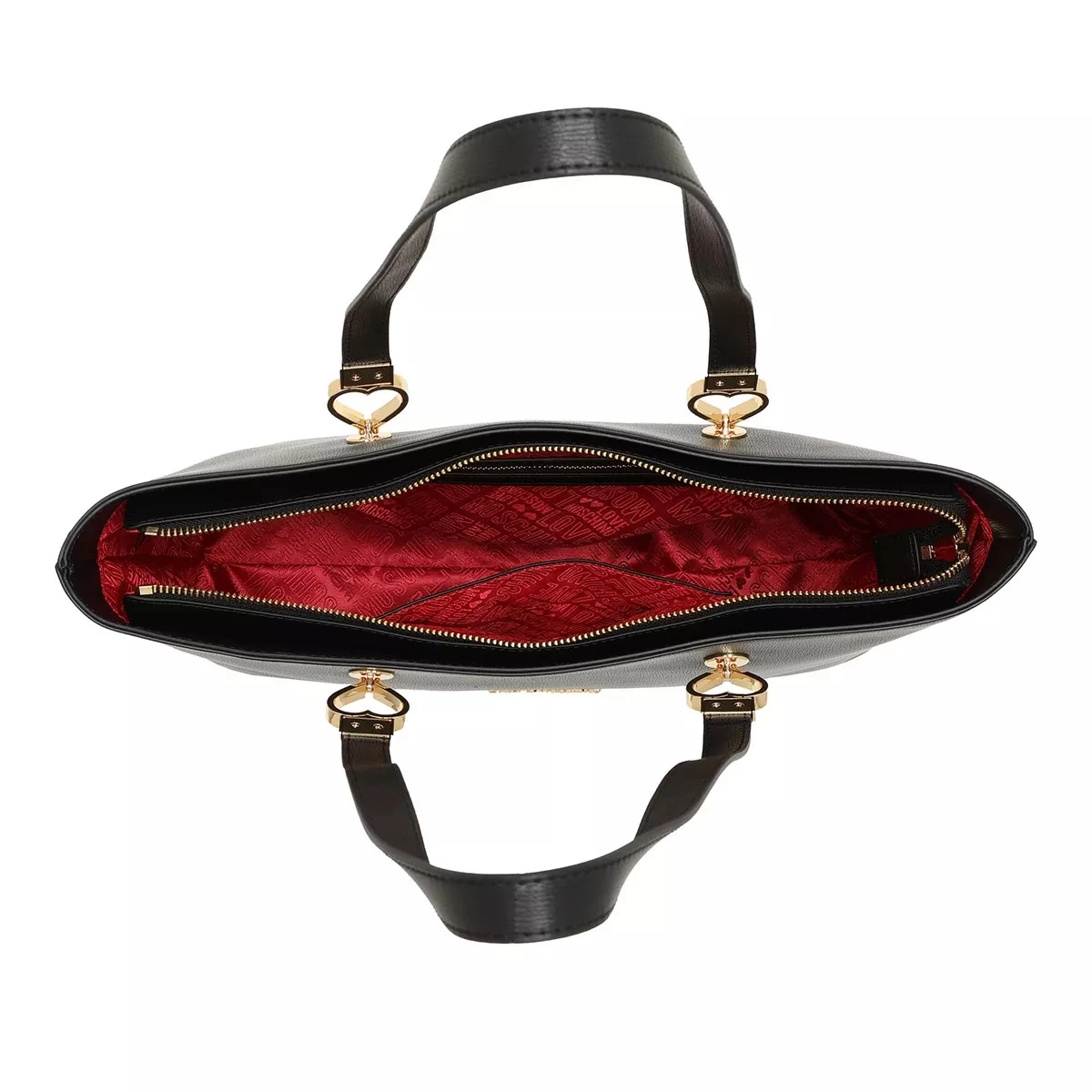 - Tascheninneres bestehend aus praktischem, rotem Textil mit Markenlogo