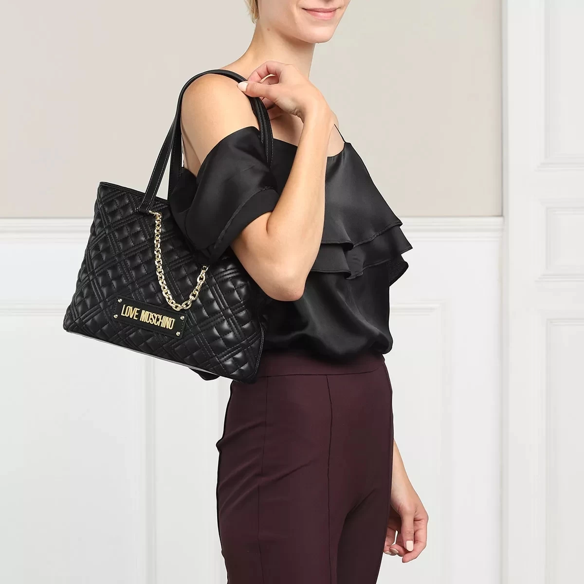 Funktional und vielseitig: Das ist die Tote Bag Borsa Quilted Pu Nero von Love Moschino.