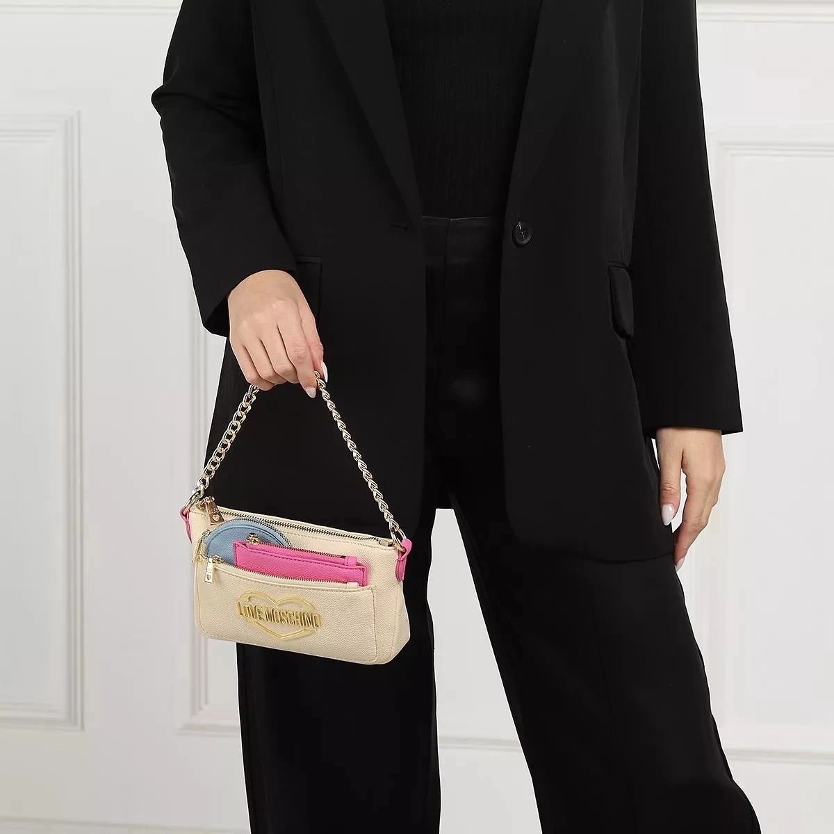 Die vielseitige Pochette Multi Pockets Fantasy Color von Love Moschino vereint einen originellen und detailreichen Look.