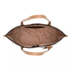 - Tascheninneres aus weichem, beigem Textil mit Designerlogo