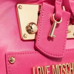Die Timeless Fantasy Color von Love Moschino ist originell und zugleich vielseitig. Bestehend aus Nylon in Pink ist die Crossbody Bag ein sportliches Accessoire mit pflegeleichter Textur. Goldfarbene Metalldetails vervollständigen das edle Aussehen der Crossbody Bag. Eine Besonderheit der Tasche ist das Schloss mit dazugehörigem Schlüssel. Es ist funktional und modisch zugleich. In einem Hauptfach lassen sich Gegenstände unkompliziert und flexibel verstauen. Zudem sorgen zwei praktische Zusatzfächer für Ordnung und separaten Schutz.