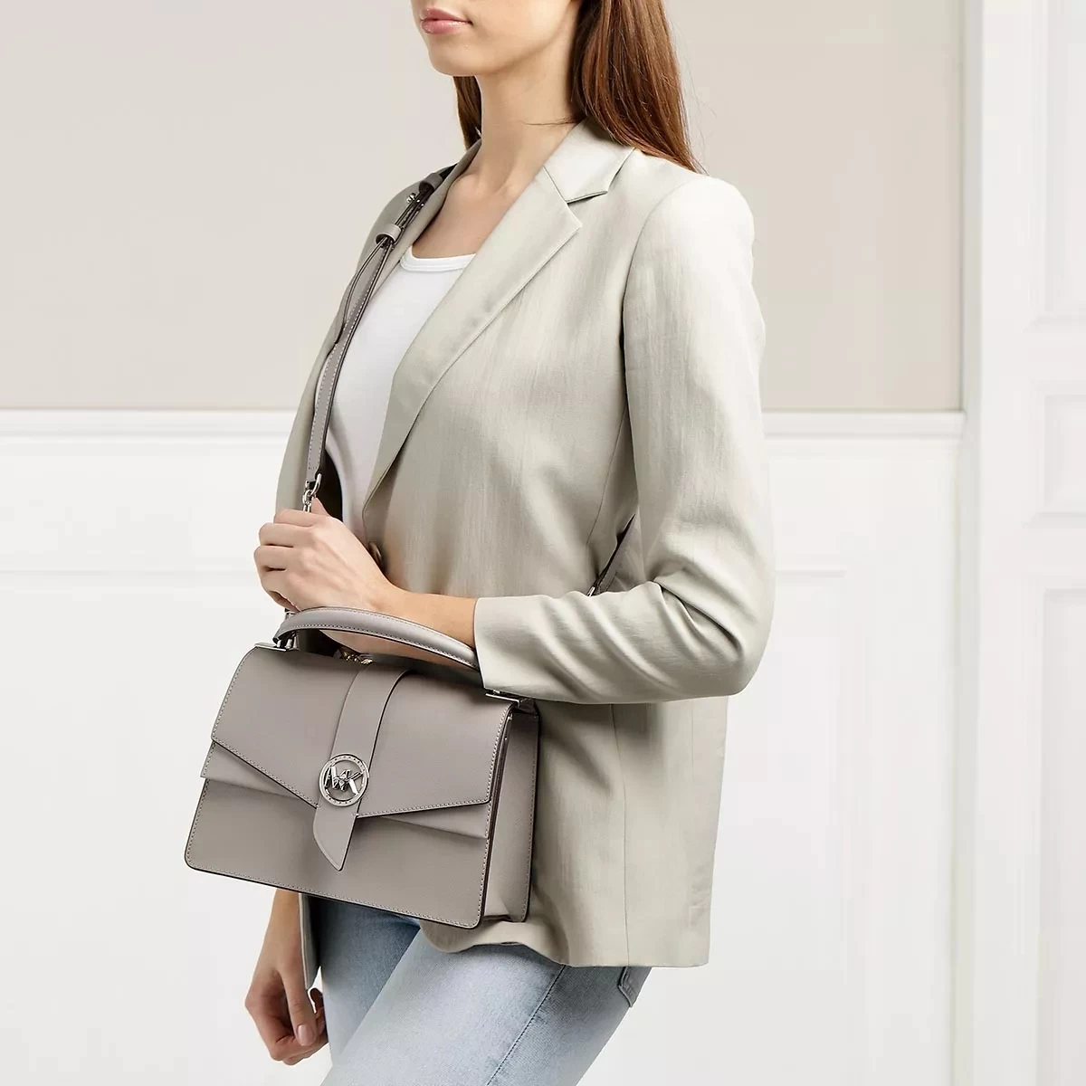 Als besonders handlich erweist sich die Satchel Greenwich Medium Th Satchel Pearl Grey von Michael Kors. Sie besteht aus Glattleder vom Rind und Saffiano-Leder vom Rind in Grau, welches ihr eine weiche Textur verleiht. Silberfarbene Metalldetails vollenden das stilvolle Aussehen der Satchel. Die Kartenfächer machen die Satchel übersichtlich und hilfreich – so sorgen sie für den perfekten Überblick. In einem Hauptfach lassen sich Gegenstände sicher und unkompliziert unterbringen. Außerdem sorgt ein praktisches Zusatzfach für Ordnung und separaten Schutz. Zwei Außenfächer ermöglichen einen schnellen Zugriff auf Kleinigkeiten, die im Alltag regelmäßig gebraucht werden.