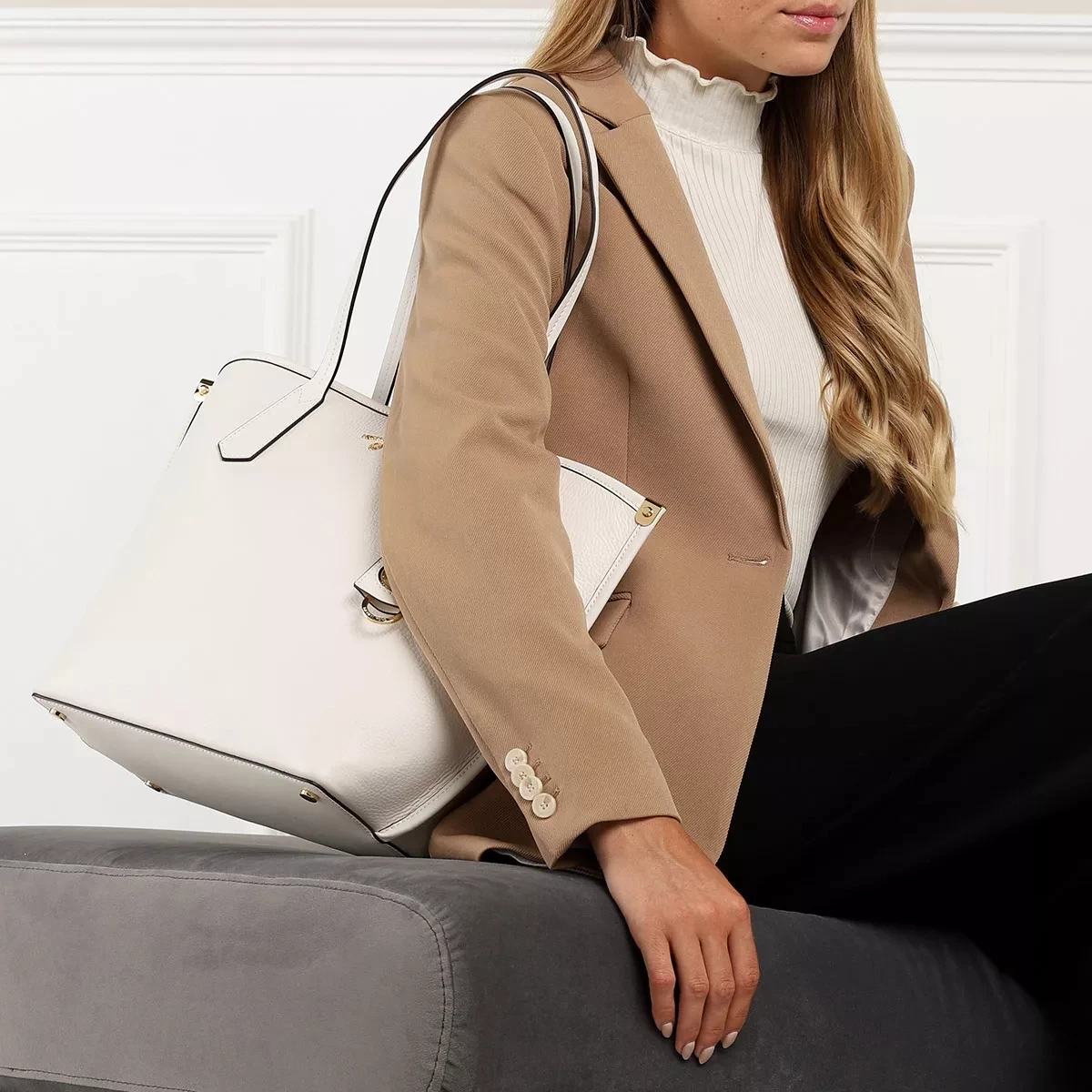 Als besonders lässig und leger zeigt sich der geräumige Shopper Jane Large Tote Optic White von Michael Kors.