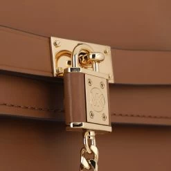 - Tascheninneres gefertigt aus weichem, braunem Textil mit Markenlogo