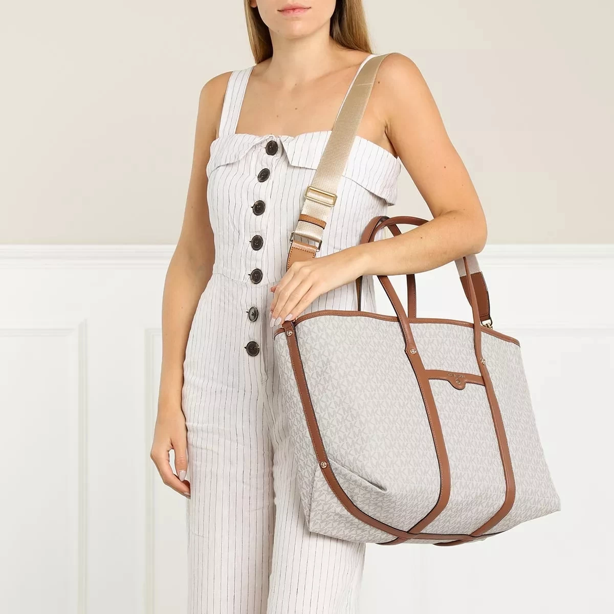 Der funktionale Shopper Large Tote Vanilla/Acrn von Michael Kors vereint einen lässigen und entspannten Look.