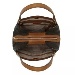 - Tascheninneres gefertigt aus praktischem, beigem Textil mit Designerlogo