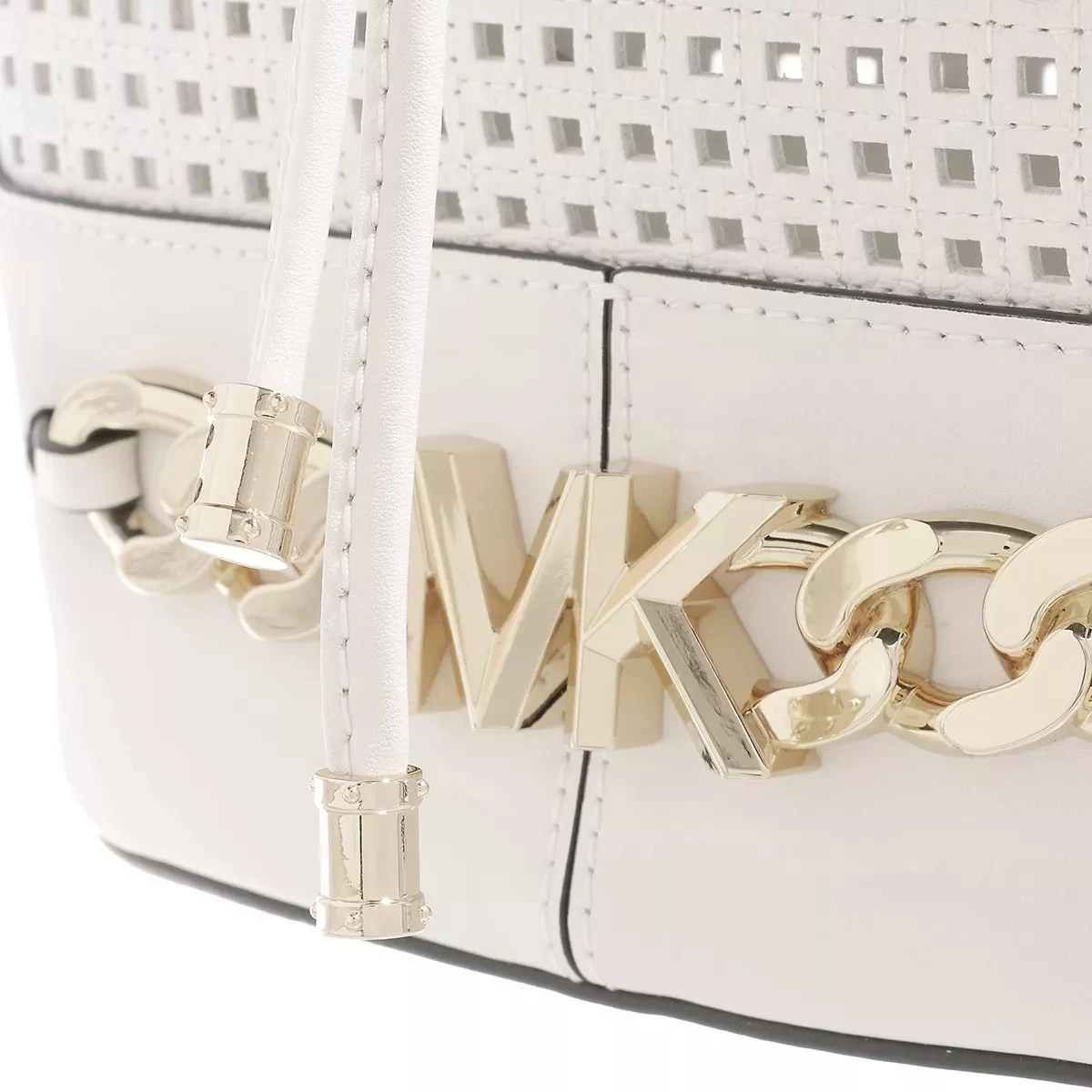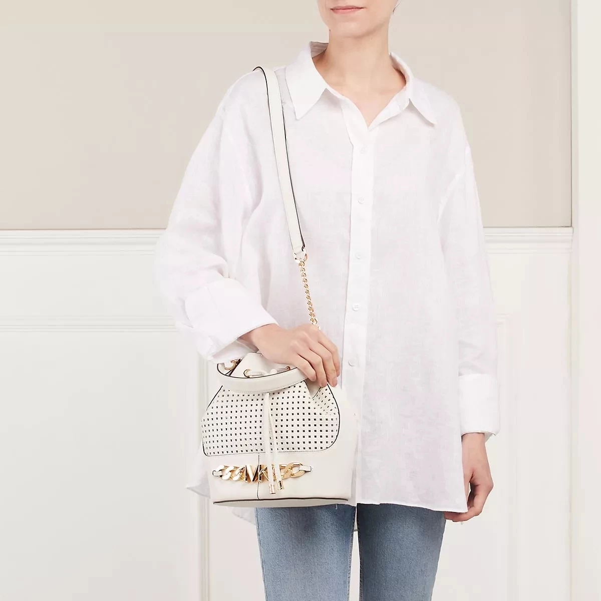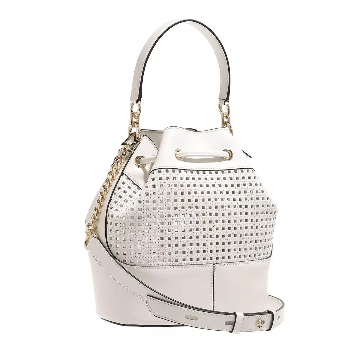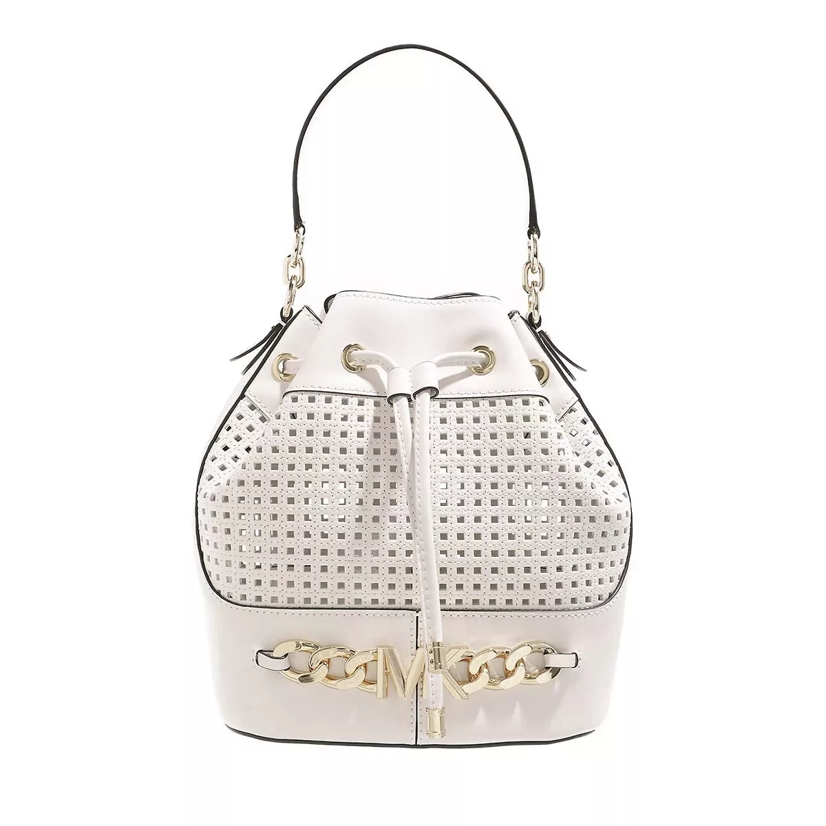 Leicht handhabbar – das ist die Beuteltasche Md Bucket Shoulder Optic White von Michael Kors.