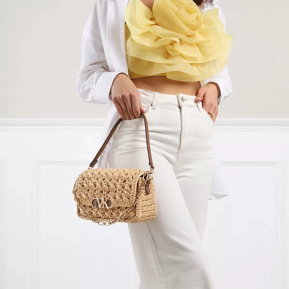 Die vielseitige Satchel Medium Pouchette Shoulder Nat Lugg von Michael Kors vereint einen bohemianen und femininen Look.