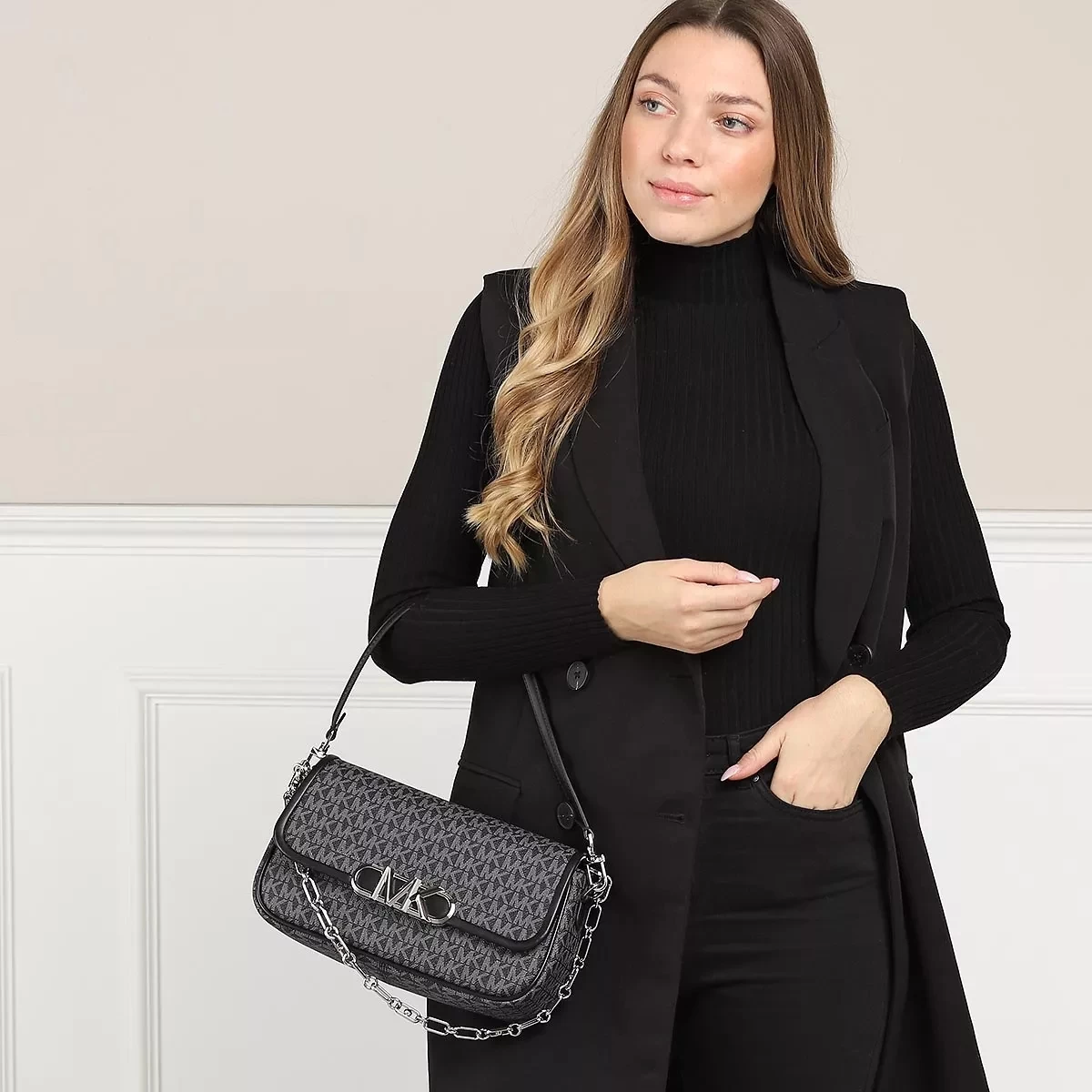 Die handliche Satchel Parker Medium Convertible Pouchette Shoulder Black Optic White von Michael Kors vereint einen entspannten und lockeren Look.