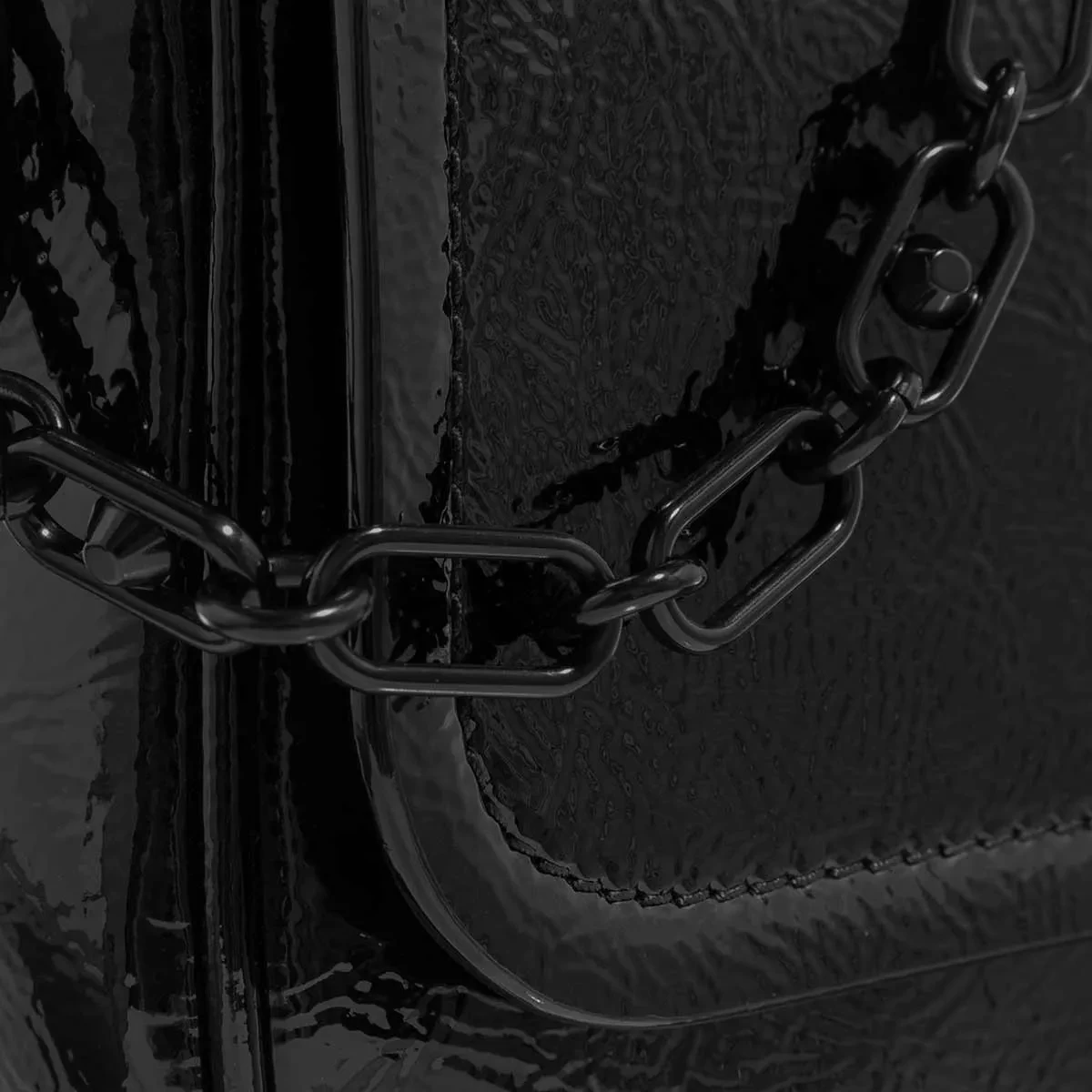 - Gefertigt aus Lackleder in Schwarz