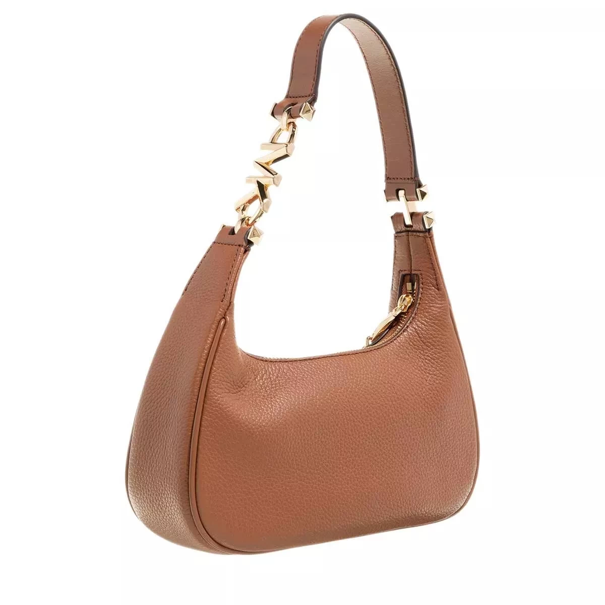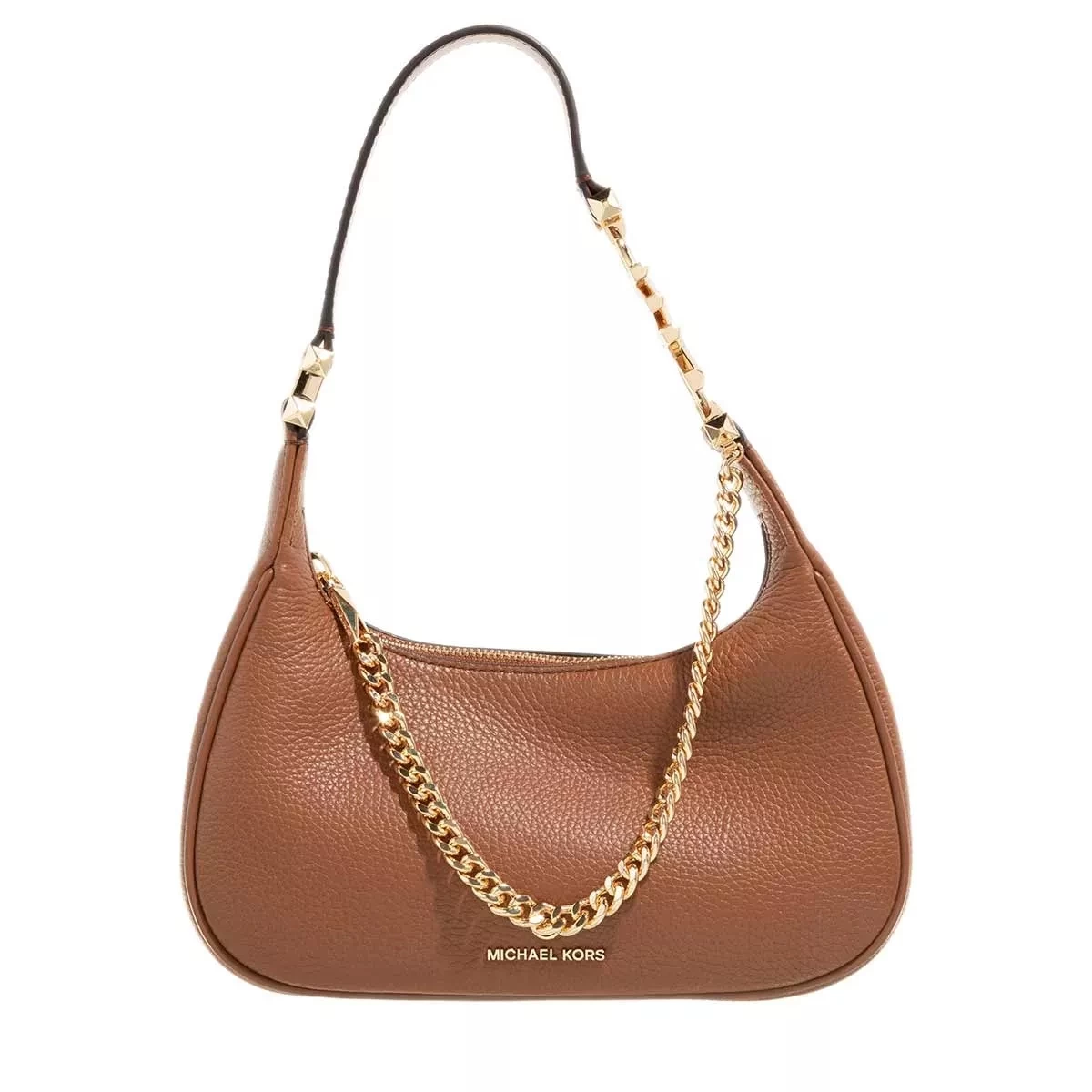 Die Sm Pouchette Luggage von Michael Kors ist schick und daneben leicht handhabbar. Sie besteht aus genarbtem Leder in Braun, die ihr eine stabile Oberfläche verleihen. Goldfarbene Metalldetails sowie dekorative Ketten vollenden das auffällige und rockige Aussehen der Hobo Bag. Besonders übersichtlich und hilfreich sind die Kartenfächer, welche für den perfekten Überblick sorgen. In einem Hauptfach lassen sich Gegenstände flexibel und unkompliziert unterbringen. Außerdem sorgen zwei praktische Zusatzfächer für Ordnung und separaten Schutz.