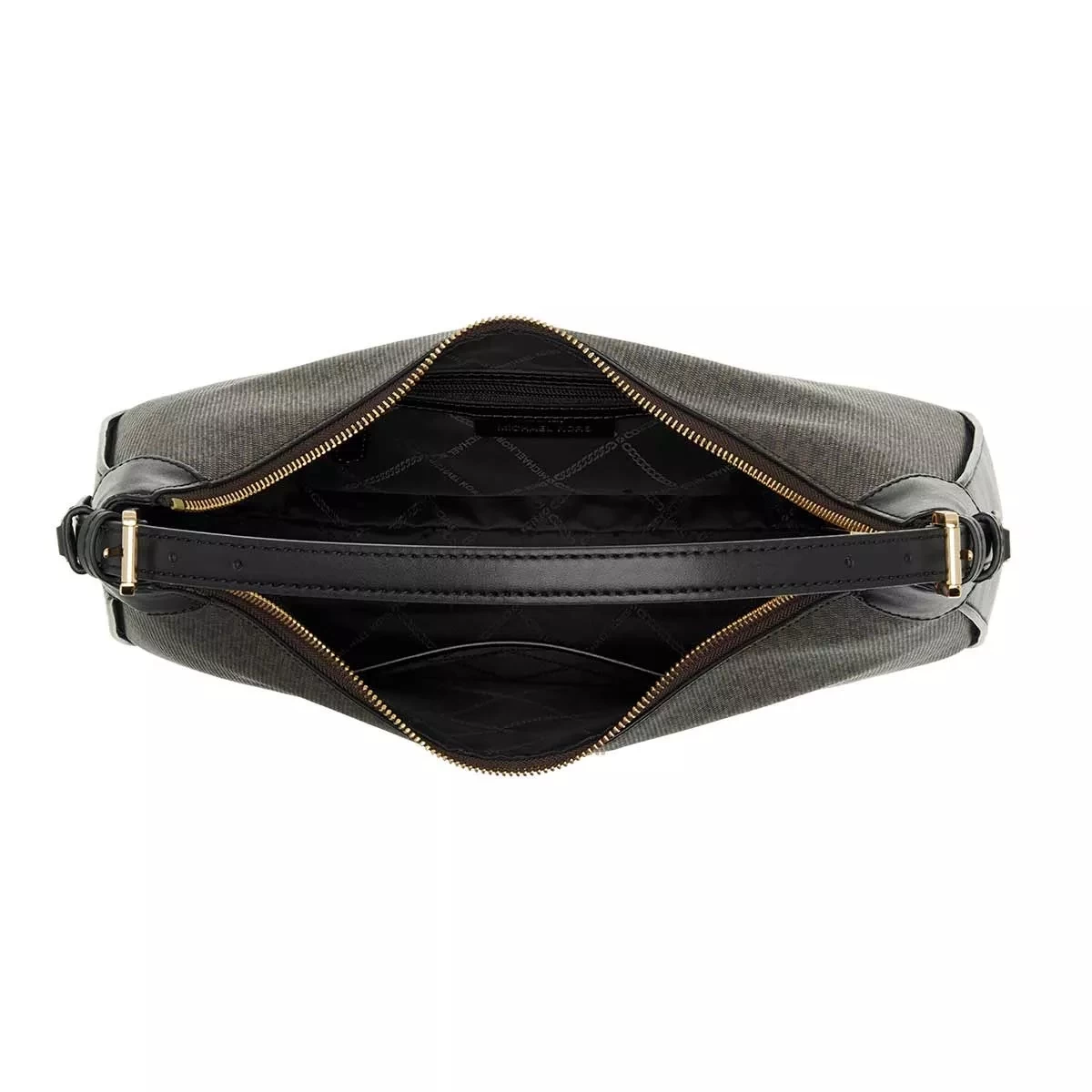 - Tascheninneres aus weichem, schwarzem Textil mit Markenlogo