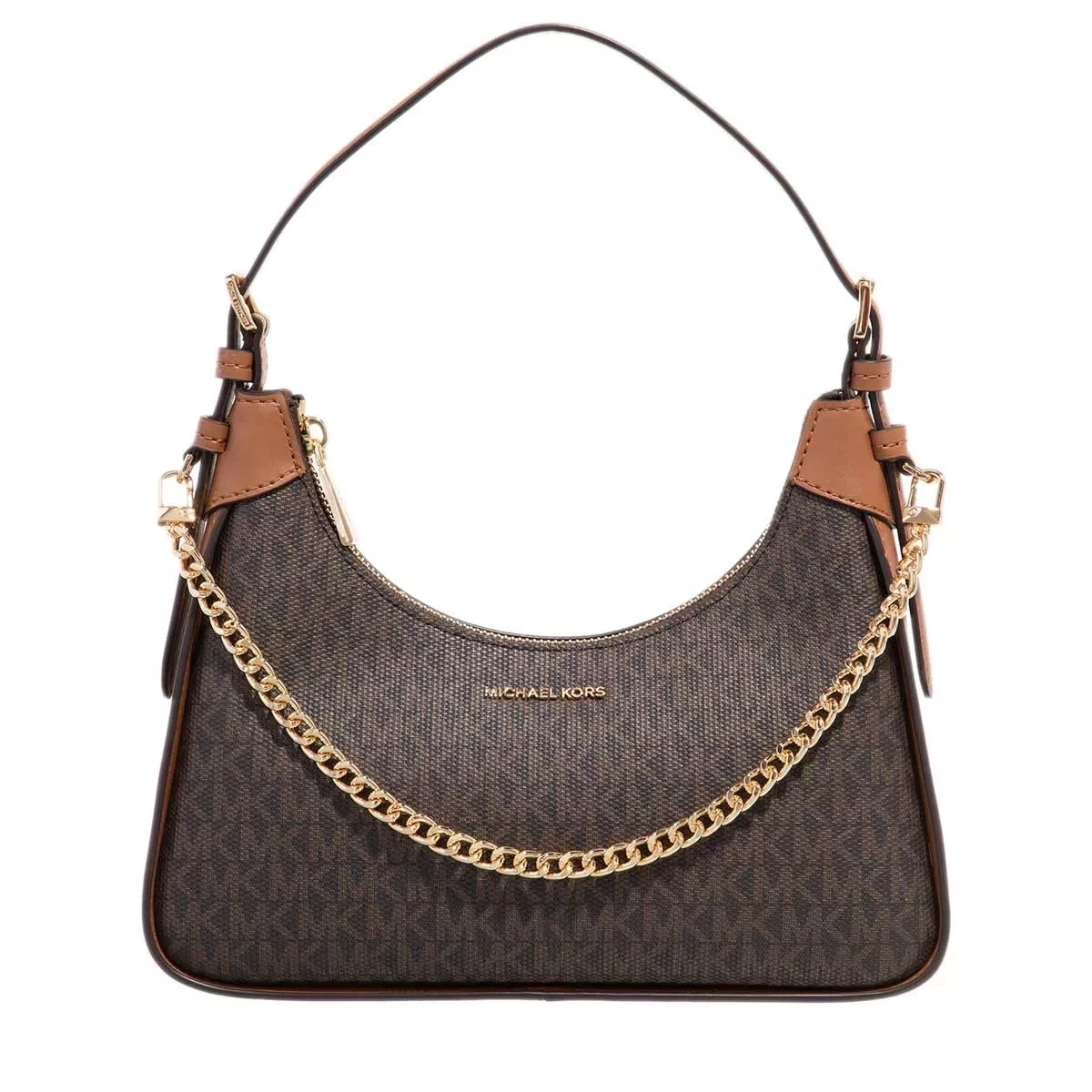 Die handliche Pochette Md Ew Pouchette Brn/Acorn von Michael Kors vereint einen schicken und schlichten Look. Bestehend aus genarbtem Canvas und beschichtetem Canvas in Braun mit Print ist die Pochette ein lässiges Accessoire mit formstabiler Oberfläche. Dieses edle Aussehen der Pochette wird durch goldfarbene Metalldetails vollendet. Flexibel und sicher lassen sich Gegenstände in einem Hauptfach unterbringen und können zudem in einem praktischen Zusatzfach ordentlich und separat transportiert werden.