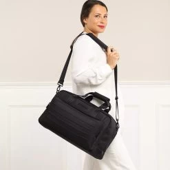 - Langlebige Oberfläche aus Polyester in Schwarz mit Details aus Leder für einen praktischen Charakter