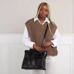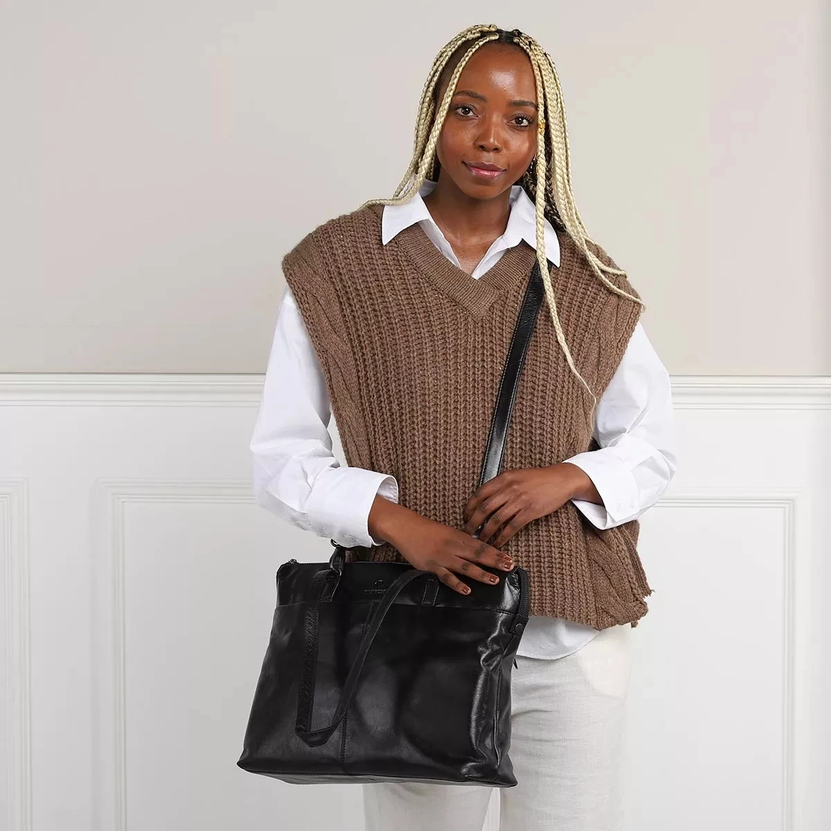 - Lässige Textur gefertigt aus Leder in Schwarz mit Vintage-Effekt für einen relaxten Charakter