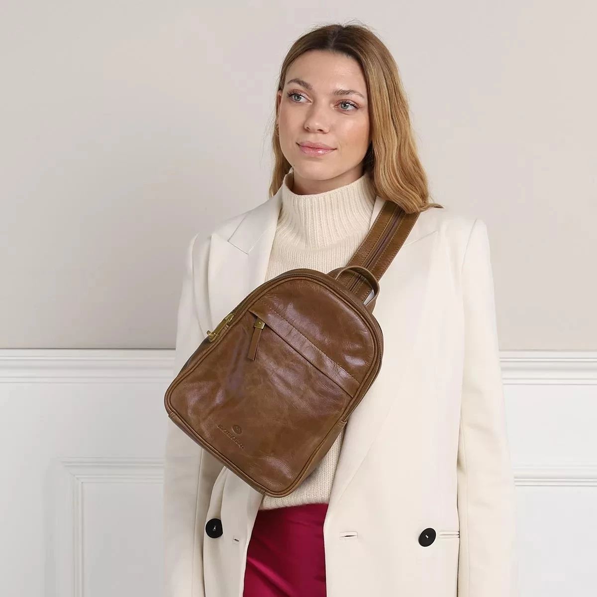 - Zwei verstellbare Schulterriemen aus langlebigem Leder fĂĽr einen stabilen Halt sowie individuelle Tragekombinationen (ca. 75 cm bis 90 cm)