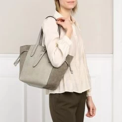 - Tascheninneres gefertigt aus praktischem, grauem Textil mit Markenlogo